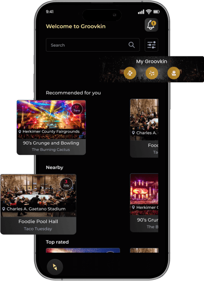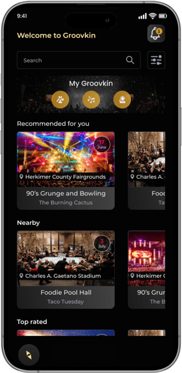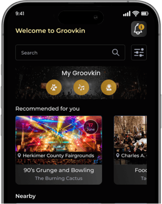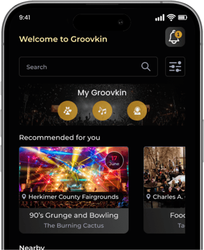 Groovkin is an app that helps you discover and manage events tailored to your music preferences and location.